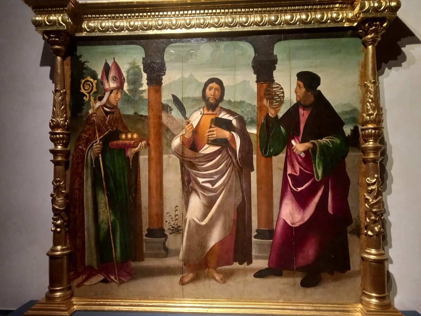 Очень необычное сочетание -- св. Николай, апостол Варфоломей и... Птолемей с небесной сферой.