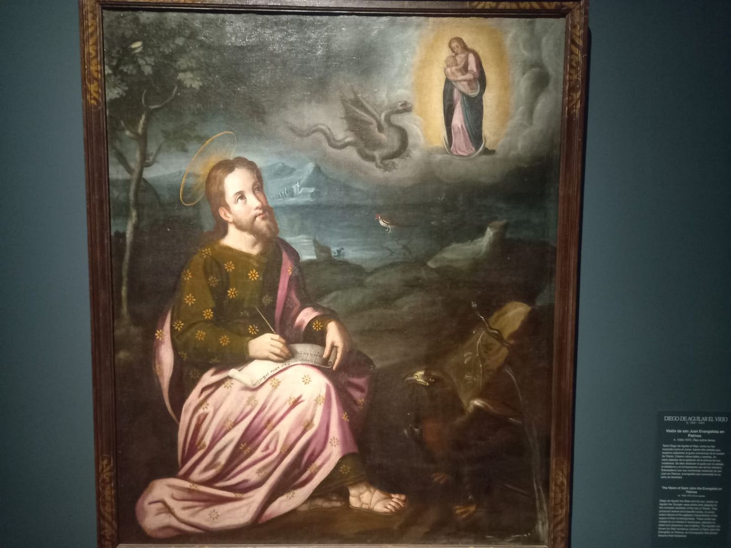 Видение Иоанна Богослова. Тут тоже присутствует дракон, а еще орел и какая-то птичка.