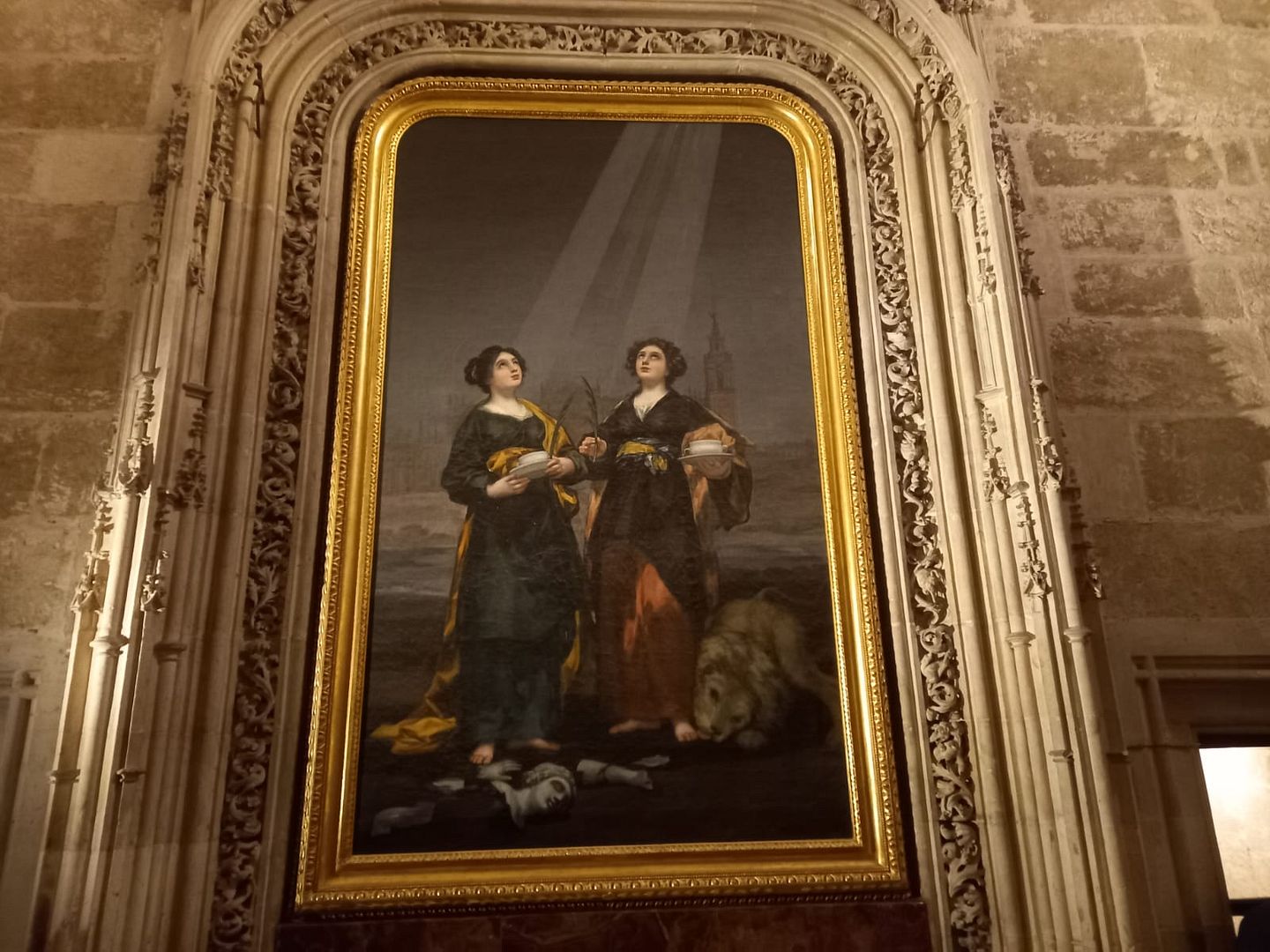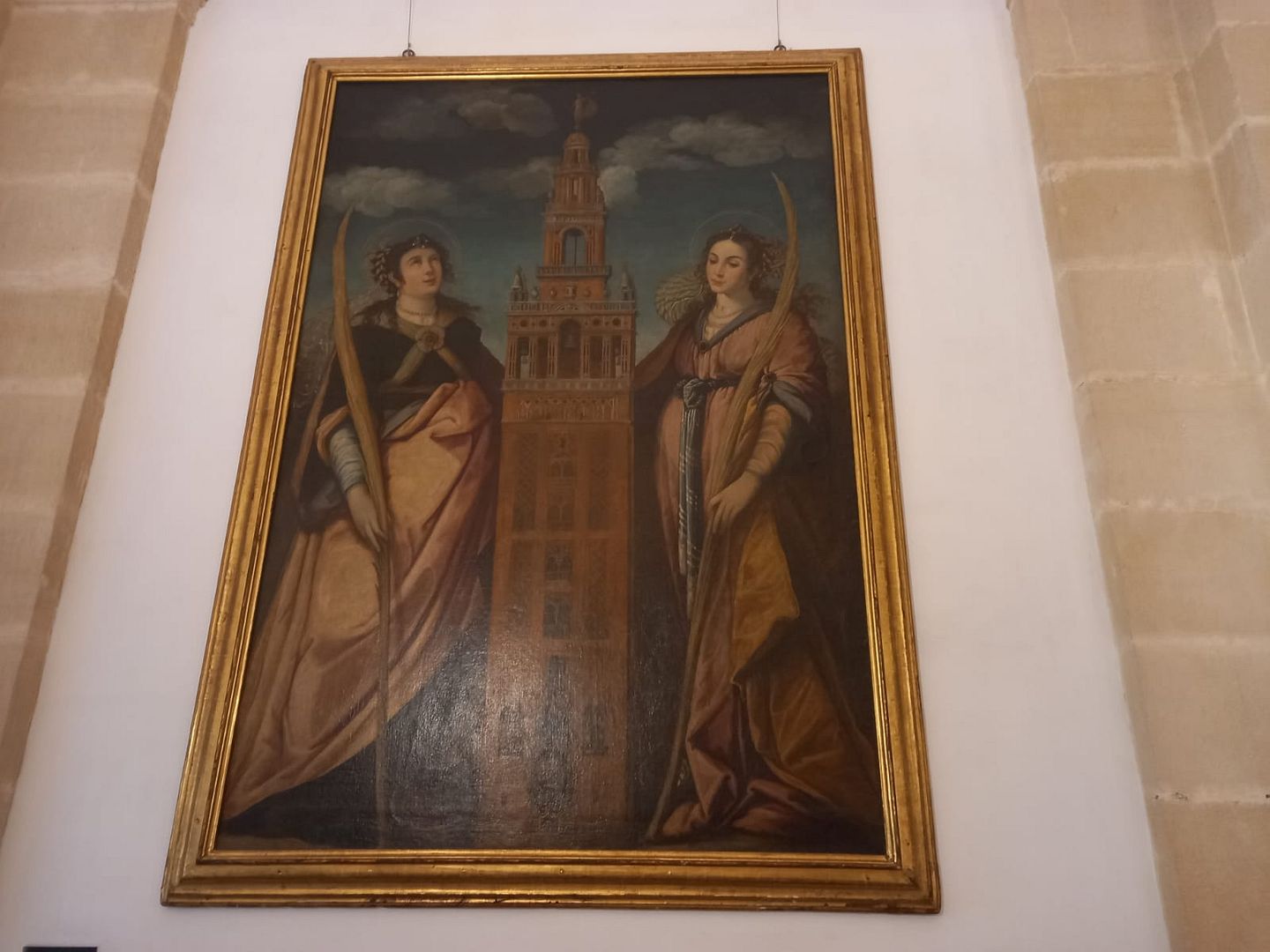 Святые Руфина и Хуста. Они были гончарами. Когда-то они разбили языческого идола, приняли мученическую смерть, их тела бросили на растерзание льву, а лев начал их лизать, как бы воздавая им честь. И по легенде эти святые спасил город во время страшного землетрясения 1755 года, которое почти полностью разрушило Лиссабон, и его волны докатились и до Севильи.
