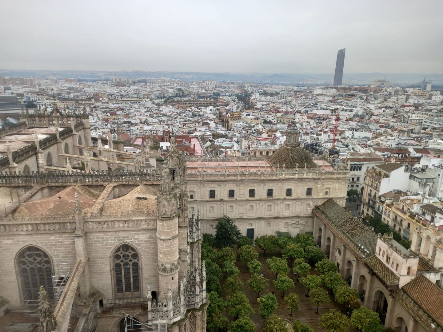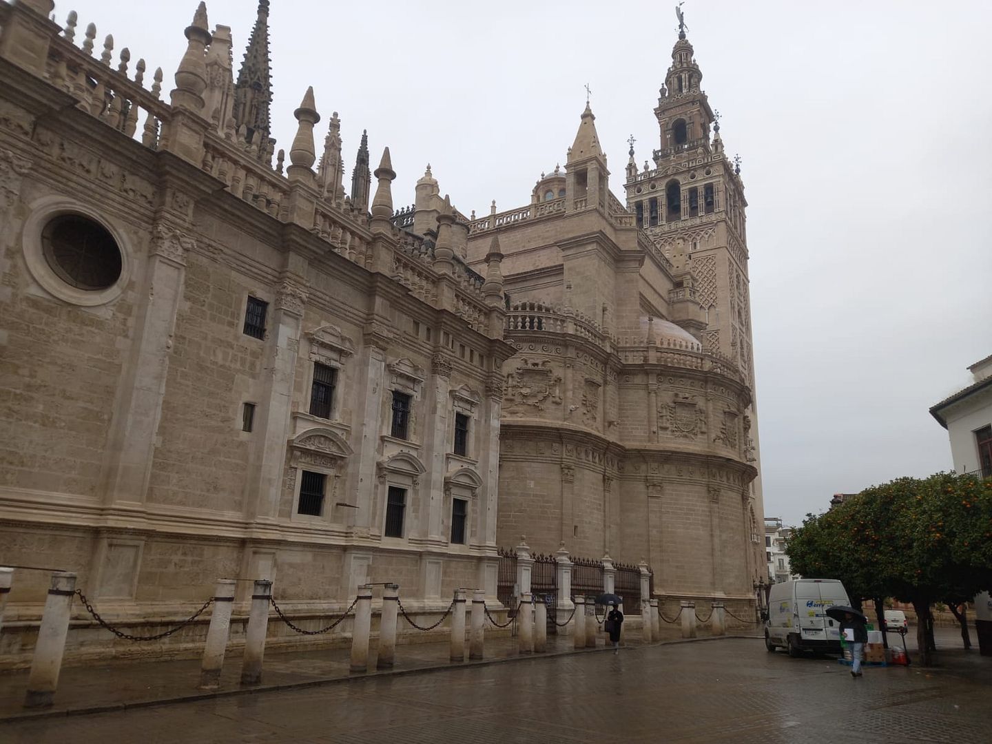 Главная достопримечательность Севильи -- башня Ла Хиральда, по сути это колокольня кафедрального собора. Собору больше 600 лет, и это самый большой готический собор в мире (и третий по величине собор в мире вообще).